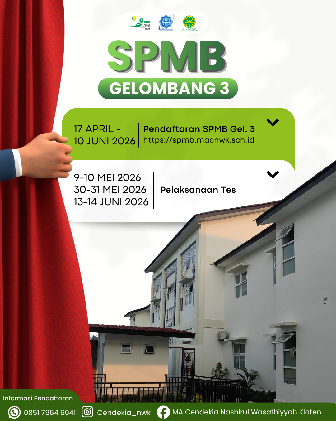 Materi Seleksi Calon Murid Baru MA Cendekia Nashirul Wasathiyyah Klaten meliputi: